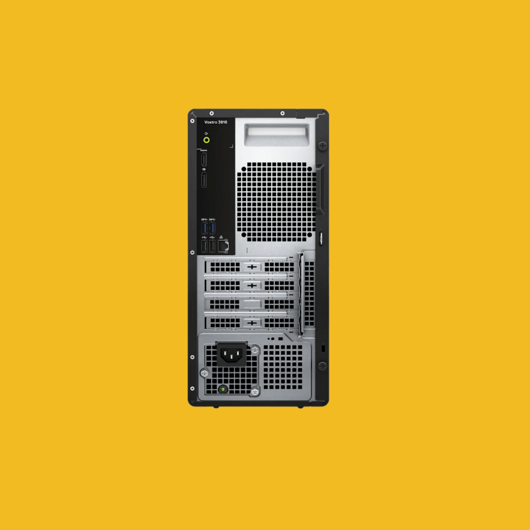The Dell Vostro 3910 PC features a sleek, professional design that fits seamlessly into any workspace. Its compact form factor saves desk space while maintaining efficient airflow and cooling. The durable build quality ensures the system withstands daily use, making it a reliable desktop for long hours of operation in both office and home environments.